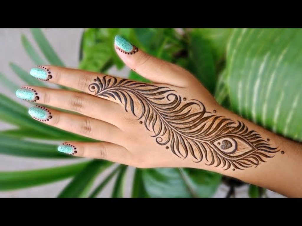 The vintage peacock feather Mehndi design draws inspiration from the majestic beauty of peacocks, incorporating their elegant feathers into intricate patterns. This design typically features a prominent peacock feather at the center, with its delicate details and eye-catching motifs. The feather is surrounded by ornate swirls, paisley patterns, and floral elements that complement its gracefulness. The overall look is intricate, regal, and reminiscent of traditional art.