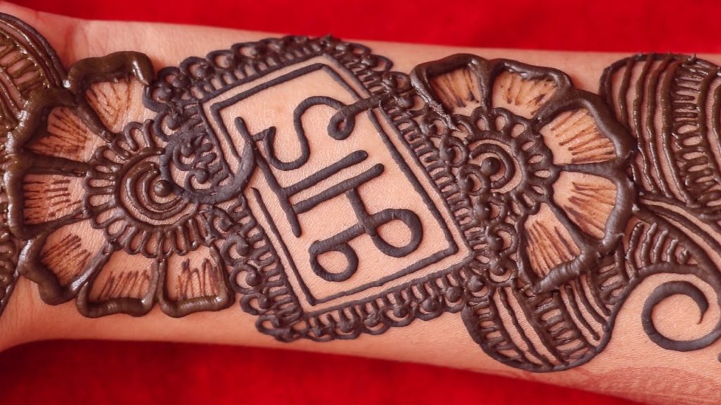 This mehndi design features bhai written in flowing Hindi script, intricately and elegantly styled with fine detail. The script is used as a backdrop to the central motif, which may be of any shape or design, depending on the preference of the wearer. The henna is applied in a thin line on the back of the hand to give the writing an added flourish. The design is perfect for weddings, festivals, and special occasions when a tribute to a loved one is desired.