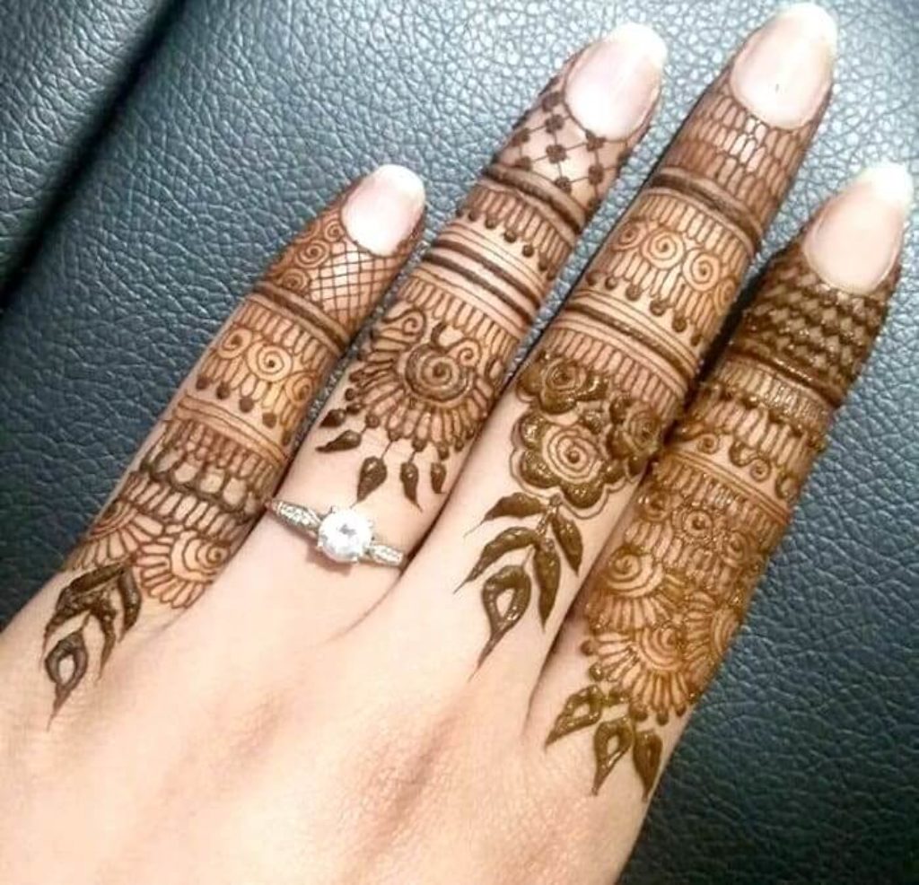 Finger Mehndi Design is one of the most unique mehndi designs. This style of mehndi art mainly features detailed and intricate motifs on the fingertips. The design itself is usually created using detailed patterns such as swirls, flowers, leaves, and other detailed motifs which are mainly focussed on the fingertips in order to give it an amazing and unique look.