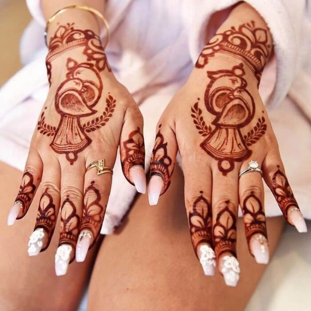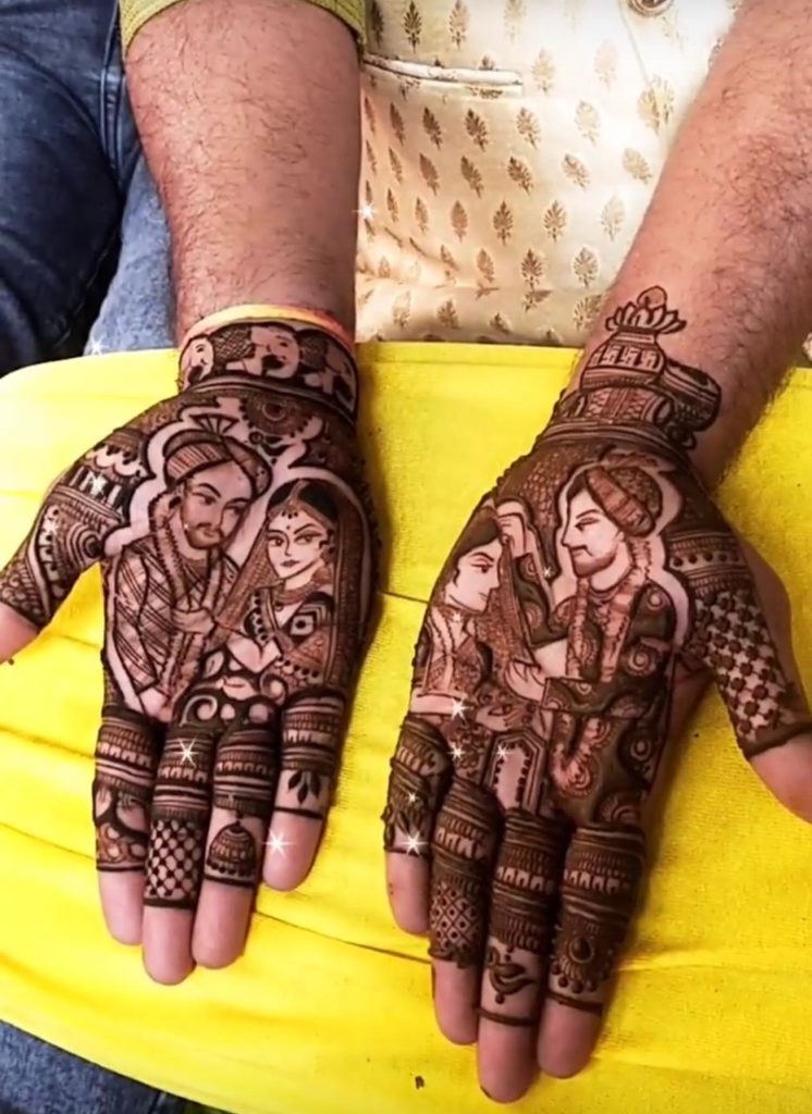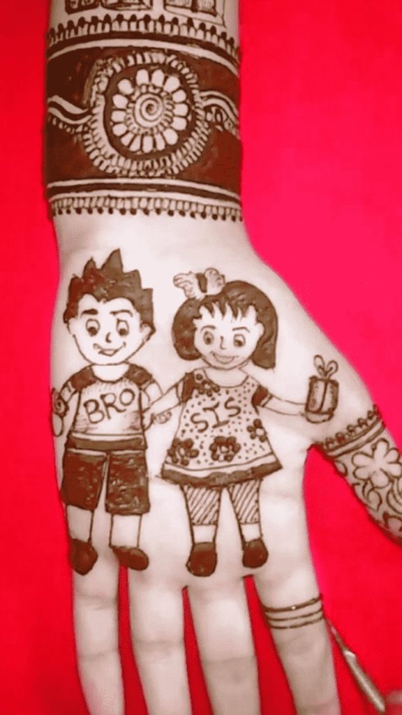 Do you want to add a one-of-a-kind and personal touch to your Mehndi? This is ideal for you! A adorable miny cartoon rendition of you and your sibling imprinted on your hands will undoubtedly make you grin. It is such a unique method to relive previous experiences with your Mehndi! This very charming and lovely Mehndi is a terrific way to branch out and slay your festival!!