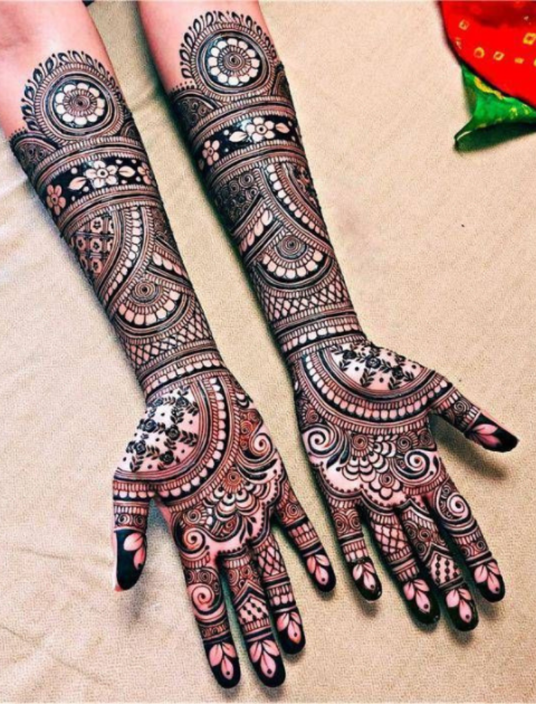 The designs often feature floral motifs, paisley patterns, intricate geometric shapes, and delicate latticework. Peacock motifs and intricate filigree patterns are also commonly incorporated. Pakistan Mehndi designs are known for their boldness and use of thick outlines, creating a striking visual impact.