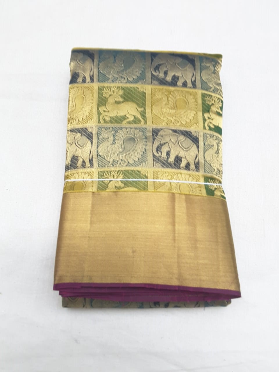 Annam, Elephant and Deer Design Kanchi Pure Silk Sarees Multi Color Gold Zari Border