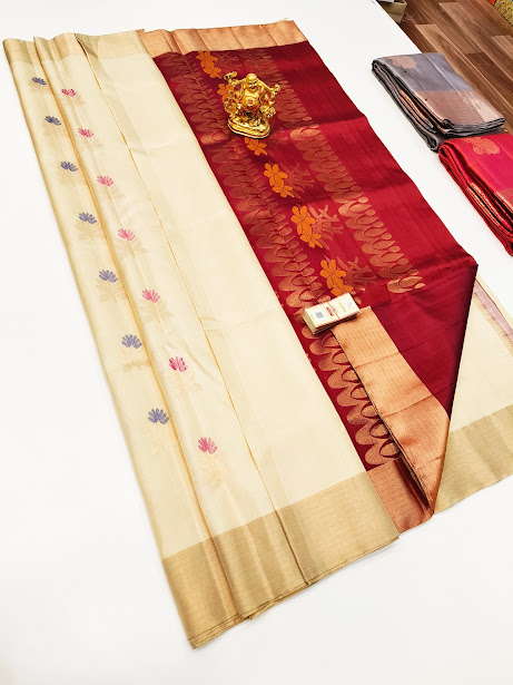 Beautiful Color and Design Pure Soft Silk Saree Off White Color w/ Blouse