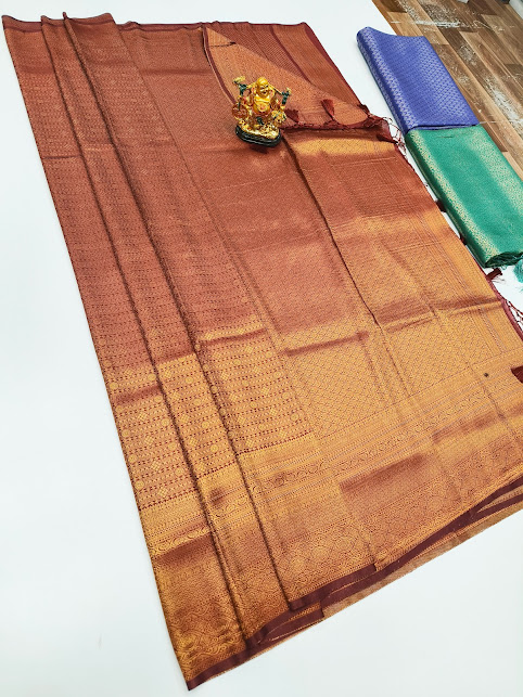 Beautiful Design Butta Mphoss Saree Kumkum Red Color w/ Blouse