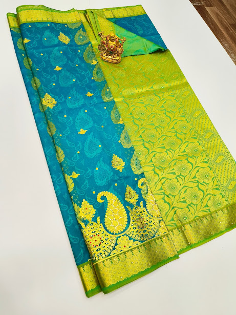 Beautiful Design Butta Mphoss Saree Sky Blue Color w/ Blouse