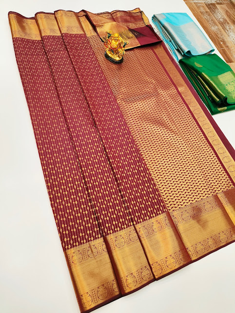 Beautiful Design High Fancy Kanjivaram Silk Saree Mix Kumkum Red Color w/ Blouse