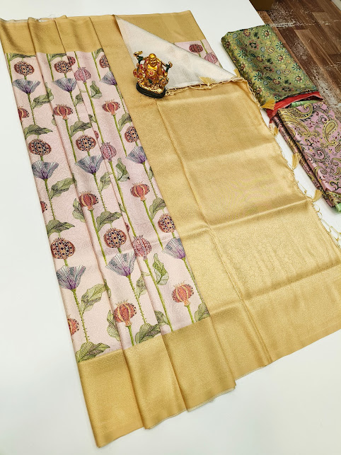 Beautiful Design High Fancy Kanjivaram Silk Saree Mix Light Peach Color w/ Blouse