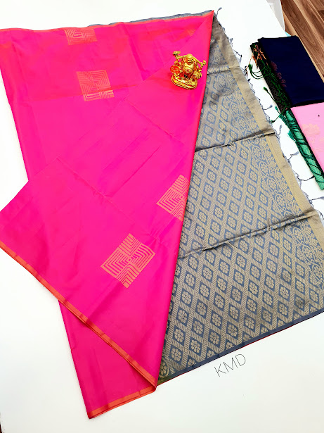 Beautiful Design K.M.D Soft 75% Pure Silk Saree Pink Color w/ Blouse