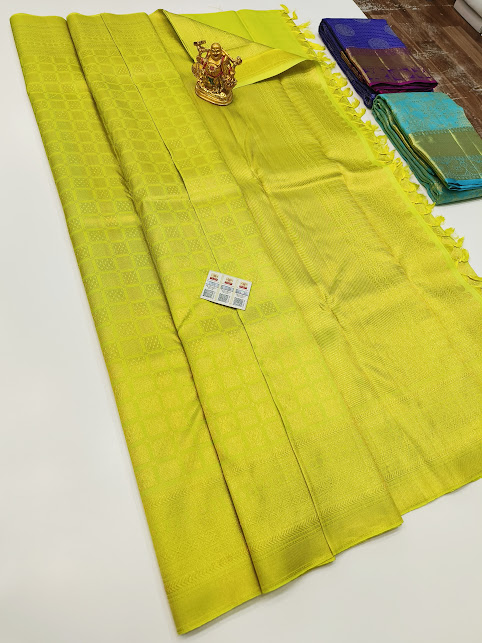 Beautiful Design Kanjivaram Pure Wedding Silk Saree Lemon Green Color w/ Blouse
