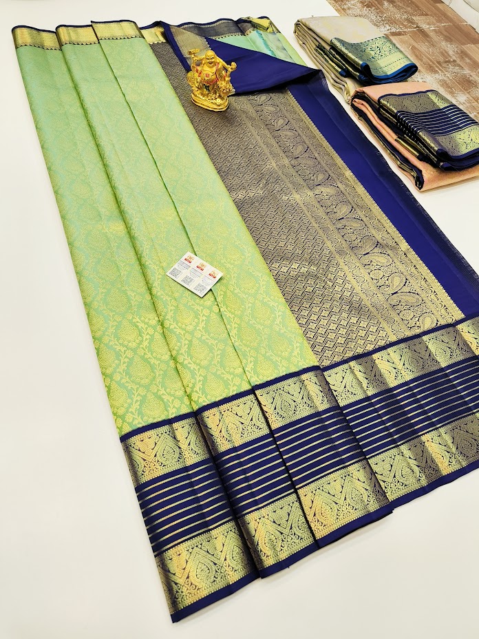 Beautiful Design Kanjivaram Pure Wedding Silk Saree Pista Color w/ Blouse