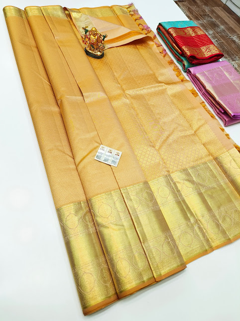 Beautiful Design Kanjivaram Pure Wedding Silk Saree Sandal Color w/ Blouse