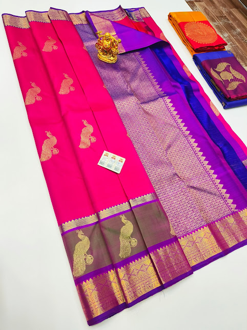 Beautiful Design Pure Kanjivaram Fancy Silk Saree Pink and Purple Color w/ Blouse