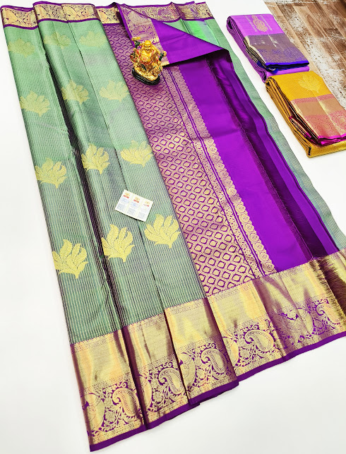 Beautiful Design Pure Kanjivaram Fancy Silk Saree Pista Green Color w/ Blouse