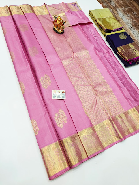 Beautiful Design Pure Kanjivaram Fancy Silk Saree Rose Color w/ Blouse