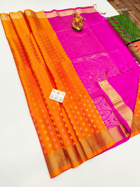 Beautiful Design Pure Soft Silk Saree Orange Color w/ Blouse