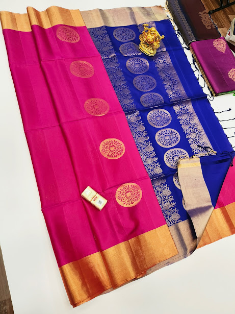 Beautiful Design Pure Soft Silk Saree Rose and Blue Color w/ Blouse