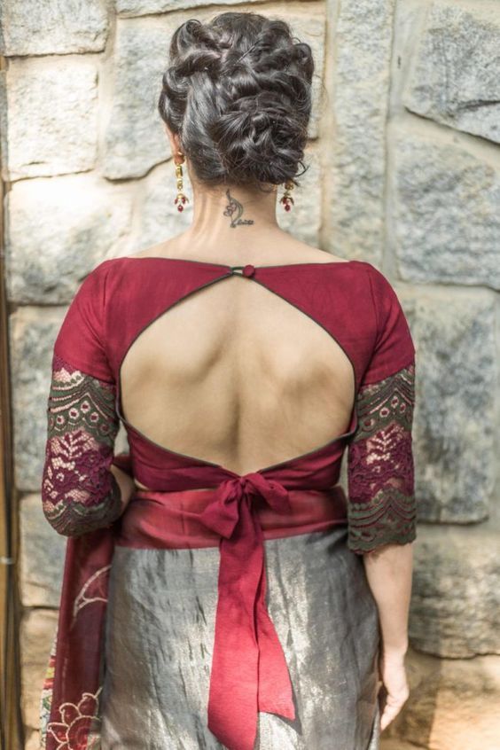 Specification: Beautiful Simple Bow and Thread Work Designer Blouse Kumkum Red Color