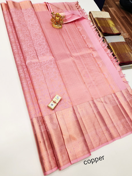 Big Border Kanjivaram Pure Wedding Silk Saree Light Rose Color w/ Blouse