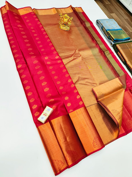 Big Gold Border Pure Soft Silk Saree Pink Color w/ Blouse