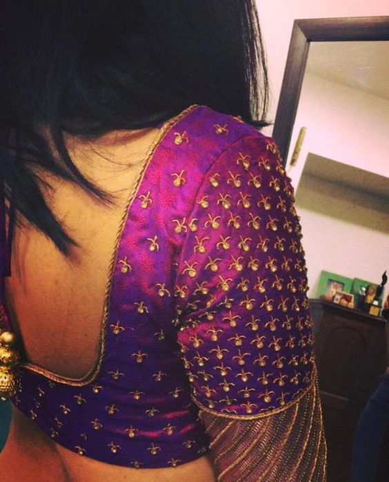 Specification: Bridal Blouses Chamki and Gold Stone Work Design Pink and Violet Shade Color