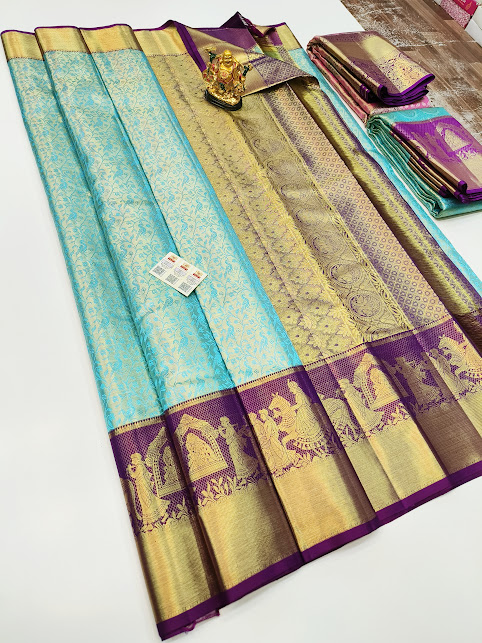 Bridal Design Kanjivaram Pure Wedding Silk Saree Sky Blue Color w/ Blouse