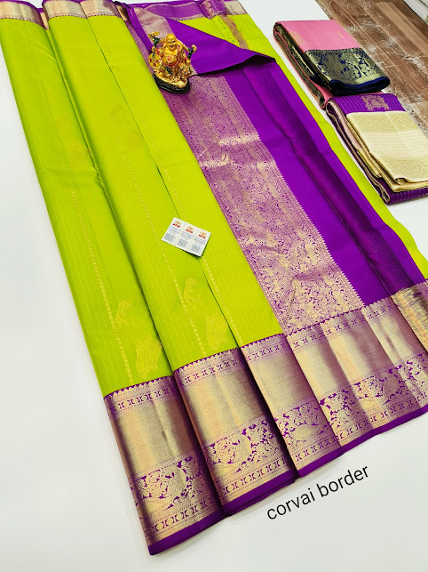 Bridal Girl Design Pure Kanjivaram Fancy Silk Saree Lemon Green Color w/ Blouse
