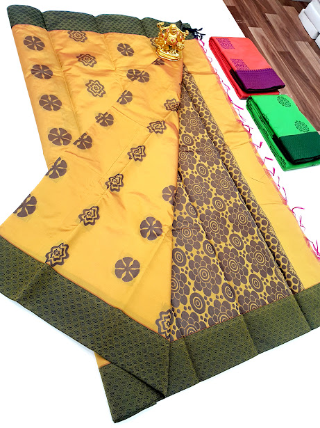 Butta Mphoss Saree Cream Yellow Color w/ Blouse