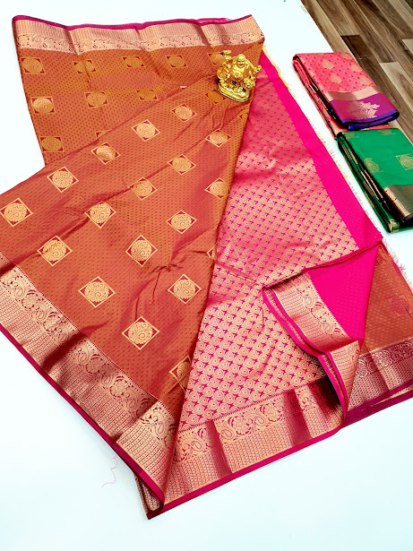 Butta Mphoss Saree Dark Peach Color w/ Blouse
