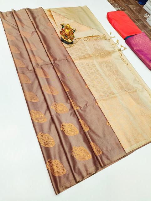 Butta Mphoss Saree Light Brown Color w/ Blouse