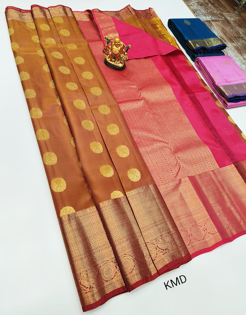 Circle Design K.M.D Soft 75% Pure Silk Saree Orange Color w/ Blouse