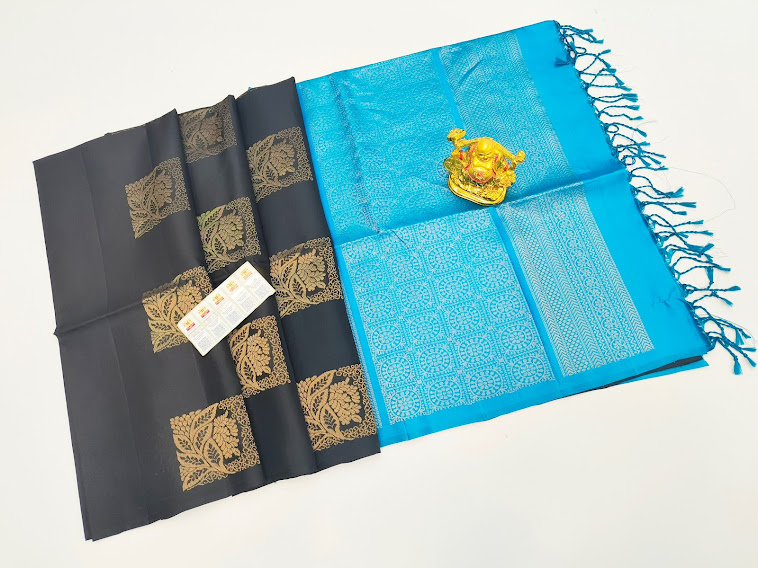 Different Design Pure Soft Silk Saree Elephant Color w/ Blouse