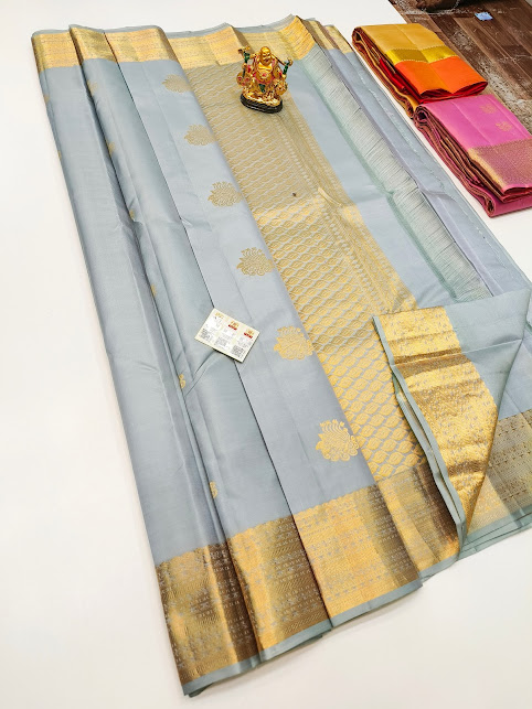 Different Design Pure Soft Silks Saree Gray Color w/ Blouse
