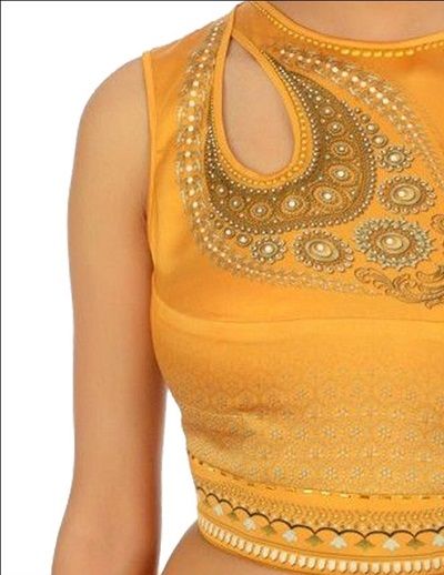 Specification: Different Front Embroidery Work Party Blouse Yellow Color