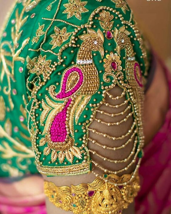- Color / Design – Green Color Peacock Thread and Jewell Work Design