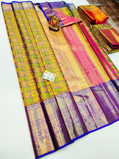 Elephant and Annam Design Kanjivaram Pure Wedding Silk Saree Multi Color w/ Blouse