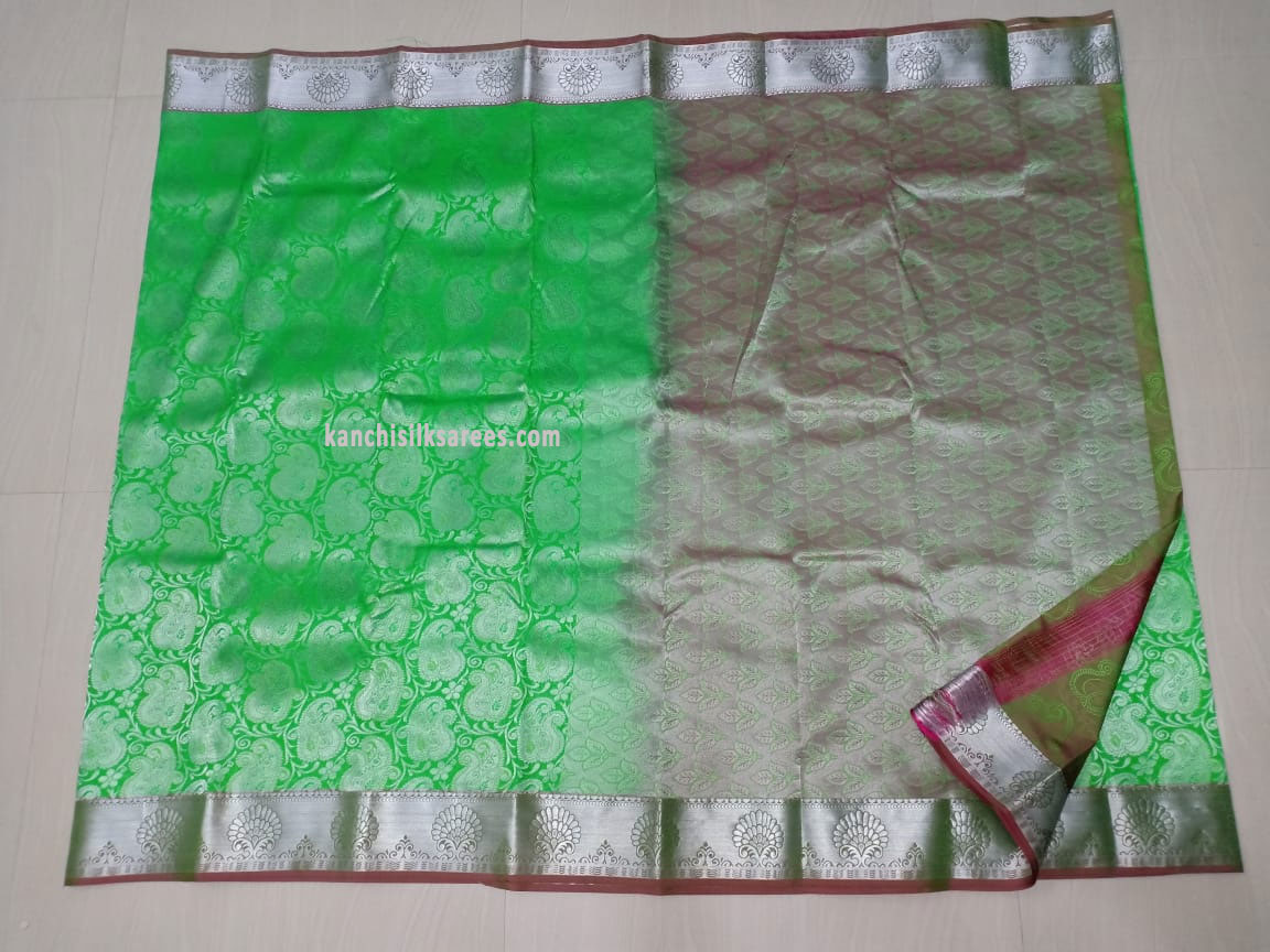 Fern Green Color Kanjivaram Pure Economy Wedding Silk Sarees Full White Zari