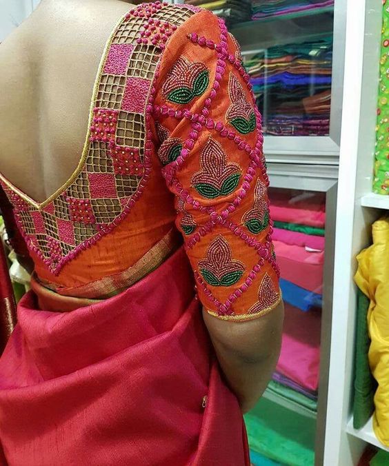 Specification: Find Pretty Thread Work Designer Blouse Orange Color
