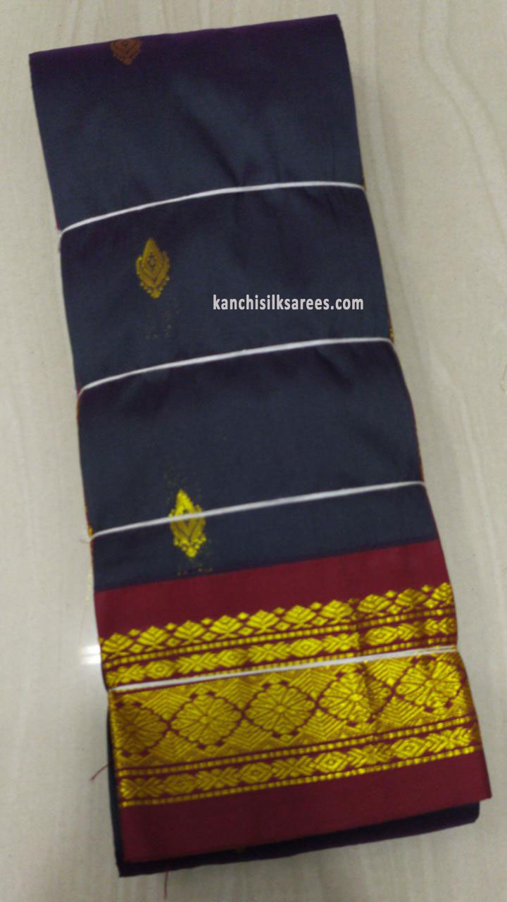 Flower Design Kanchipuram One Side Border Gift Silk Sarees Anchor Grey Color