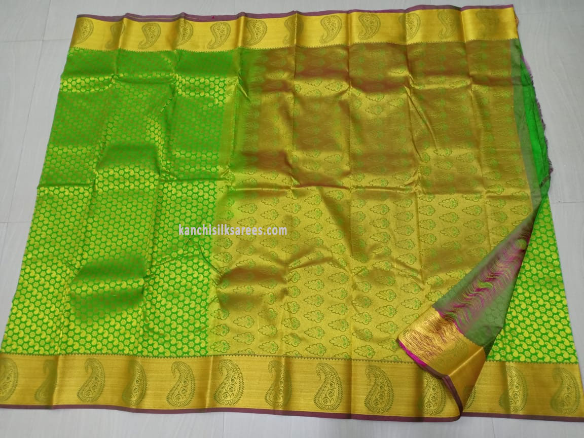 Full Mango Zari Work Design Kanjivaram Pure Silk Economy Wedding Sarees Shamrock Green Color