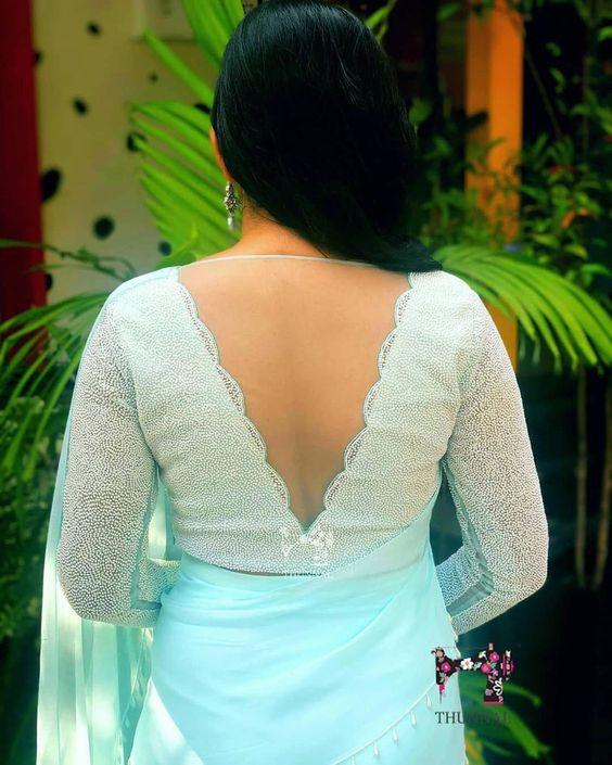 Specification: Full Sleeves Party Blouse V Neck Sky Blue Color