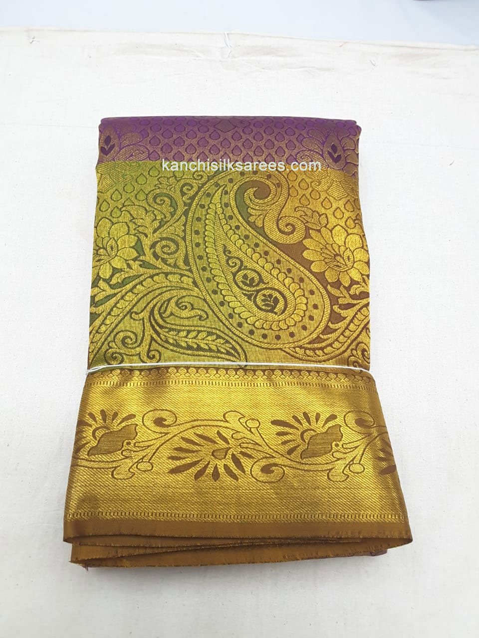 Handloom Kanjivaram Pure Pattu Sarees Mango Design Tacha Green w/ Gold Zari Color