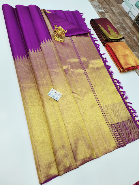 Heavy Gold Zari Design Pure Kanjivaram Fancy Silk Saree Magenta Color w/ Blouse