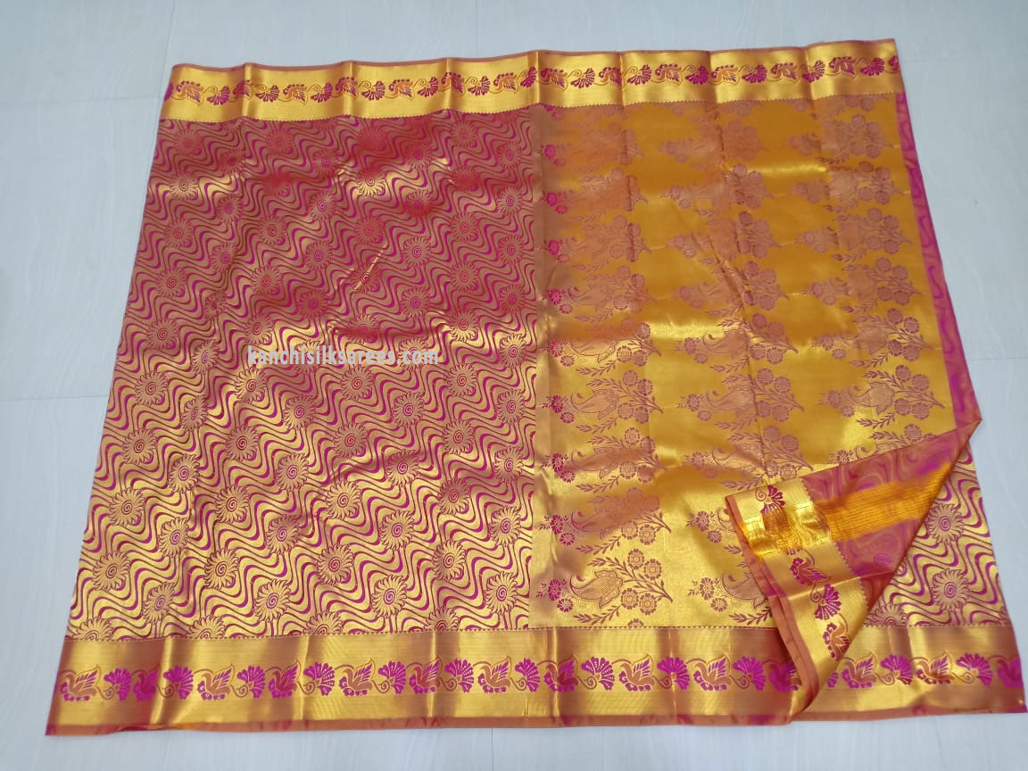 Heavy Work Design Kanchipuram Pure Silk Sarees Full Gold Zari Magenta Color