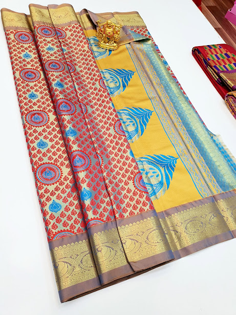 High Fancy Design Kanjivaram Semi Silk Red Color w/ Blouse