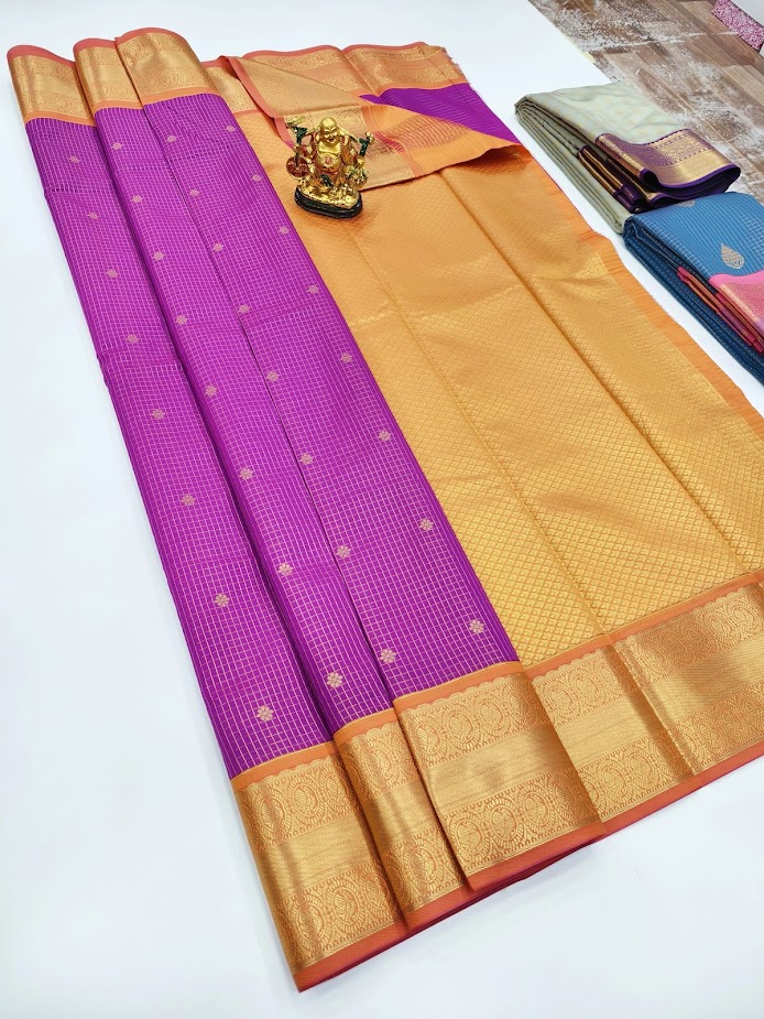 High Fancy kanchipuram Silk Saree Mix Purple Color w/ Blouse