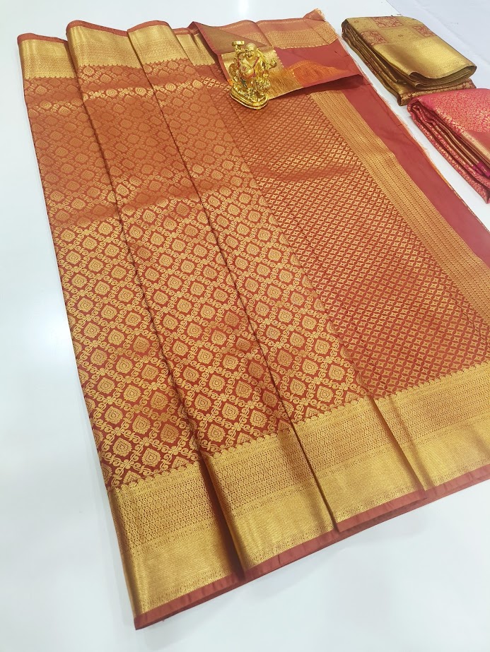 High Fancy Kanjivaram Silk Saree Apple Red Color w/ Blouse