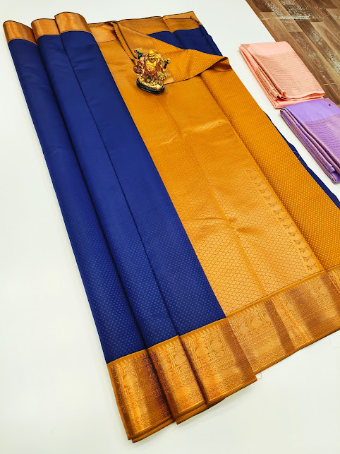 High Fancy Kanjivaram Silk Saree Mix Blue Color w/ Blouse