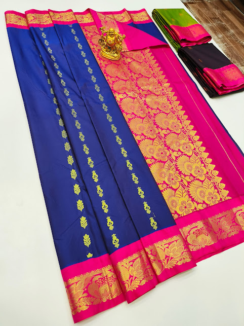 High Fancy Kanjivaram Silk Saree Mix Blue Color w/ Blouse