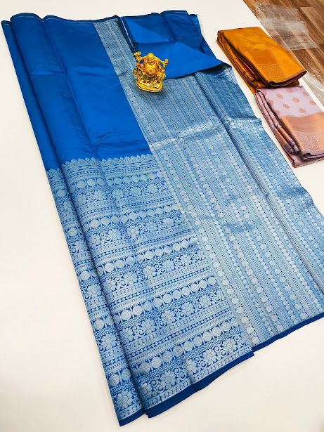 High Fancy Kanjivaram Silk Saree Mix Blue Color w/ Blouse