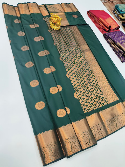 High Fancy Kanjivaram Silk Saree Mix Bottle Green Color w/ Blouse